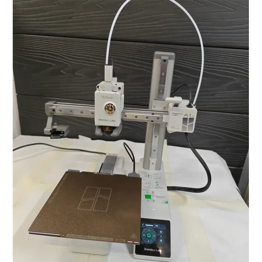 3D принтер Bambu Lab A1 mini Б/У в рабочем состоянии. Сенсорный экран управления, PEI подложка и магнитная пластина имеет незначительные царапины.
