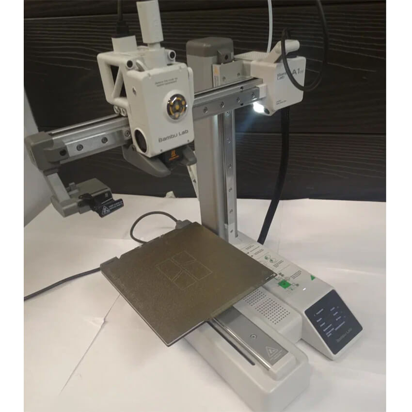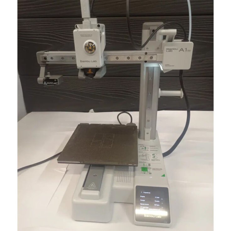 3D принтер Bambu Lab A1 mini Б/У в рабочем состоянии. Упаковочная коробка, платформа для печати, хотэнд имеют незначительные загрязнения и повреждения.