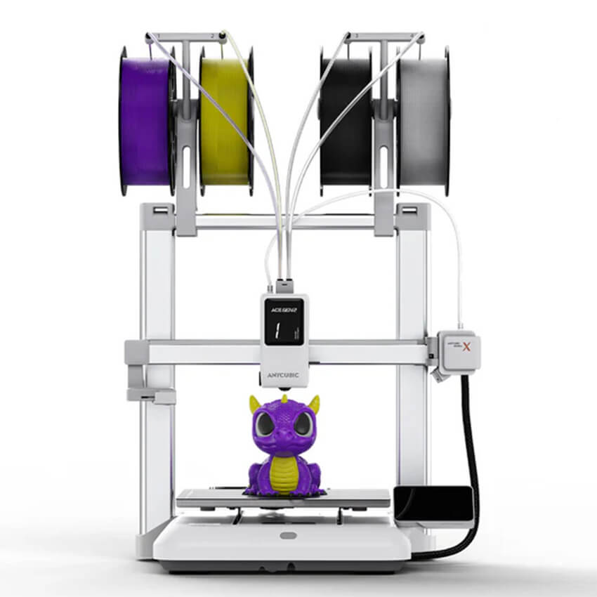 Anycubic Kobra X — это инновационный 3D-принтер, объединяющий высокую скорость, интеллектуальные функции и уникальную систему многоцветной печати. Его стандартная скорость печати составляет 300 мм/с, а максимальная может достигать 600 мм/с. Высокая производительность обеспечивается также максимальным ускорением в 20000 мм/с², что позволяет принтеру быстро разгоняться и замедляться без потери качества.