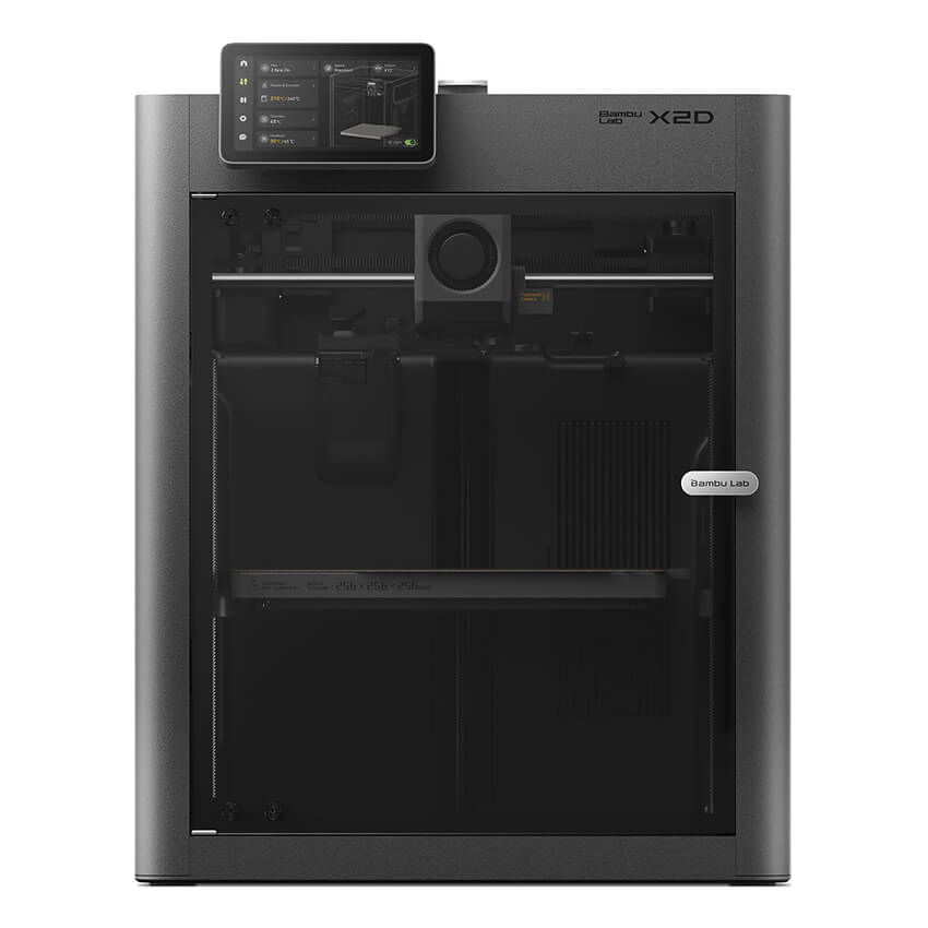 Bambu Lab X2D — это следующее поколение серии X1. Главное нововведение — система с двумя соплами, которая разделяет задачи: основное сопло создает модель, а вспомогательное — печатает поддержки. Деталь готова к использованию сразу после печати — шлифовать или зачищать места контакта с поддержками не требуется.