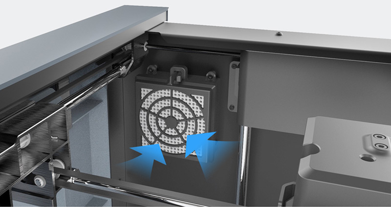 Встроенный аккумулятор и память позаботятся о том, чтобы сопло 3D-принтера было отведено в сторону при отключении электропитания, благодаря этому модели будут застрахованы от повреждения из-за слишком высокой температуры сопла.