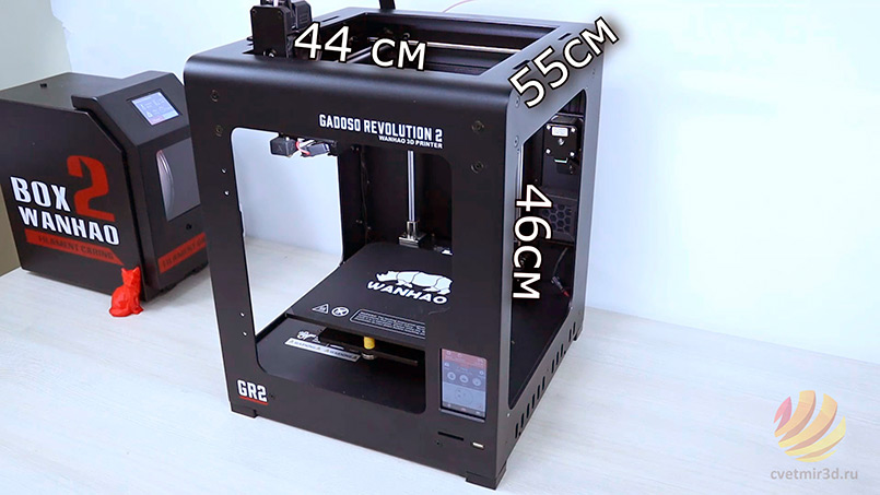 Принтер имеет довольно скромные размеры и легко поместится даже на небольшой тумбочке. Его габариты 460 х 440 х 550 мм. Область его печати не изменилась от прошлой модели и составляет 200x200x175 мм.